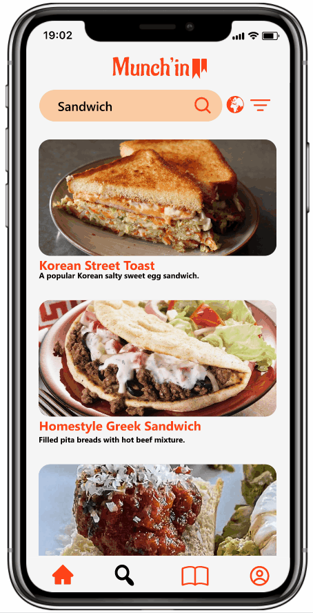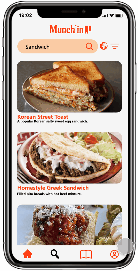 Munch’in is a recipe app that provides food lovers with a simple user interface which allows for the finding recipes in the blink of an eye. Munch’in prioritizes finding and saving of recipes with no extra bloat, while also allowing recipe feedback.