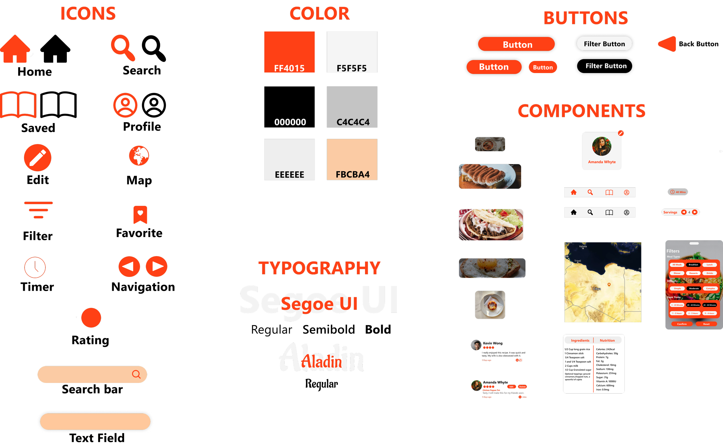 After finalizing the sketches, I created a UI Kit for the app which includes Colors, Icons, Buttons, Typography and Components. This helps to keep a consistent design throughout the high fidelity prototype.